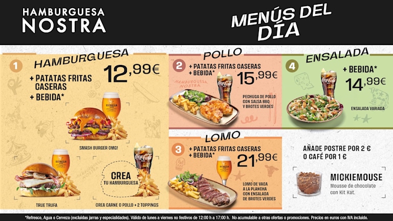 ¿Estás buscando dónde comer bien entre semana? Ven a disfrutar del Menú Especial de Hamburguesa Nostra, disponible de lunes a viernes en nuestro restaurante ubicado en la zona de restauración de Plaza Norte 2.